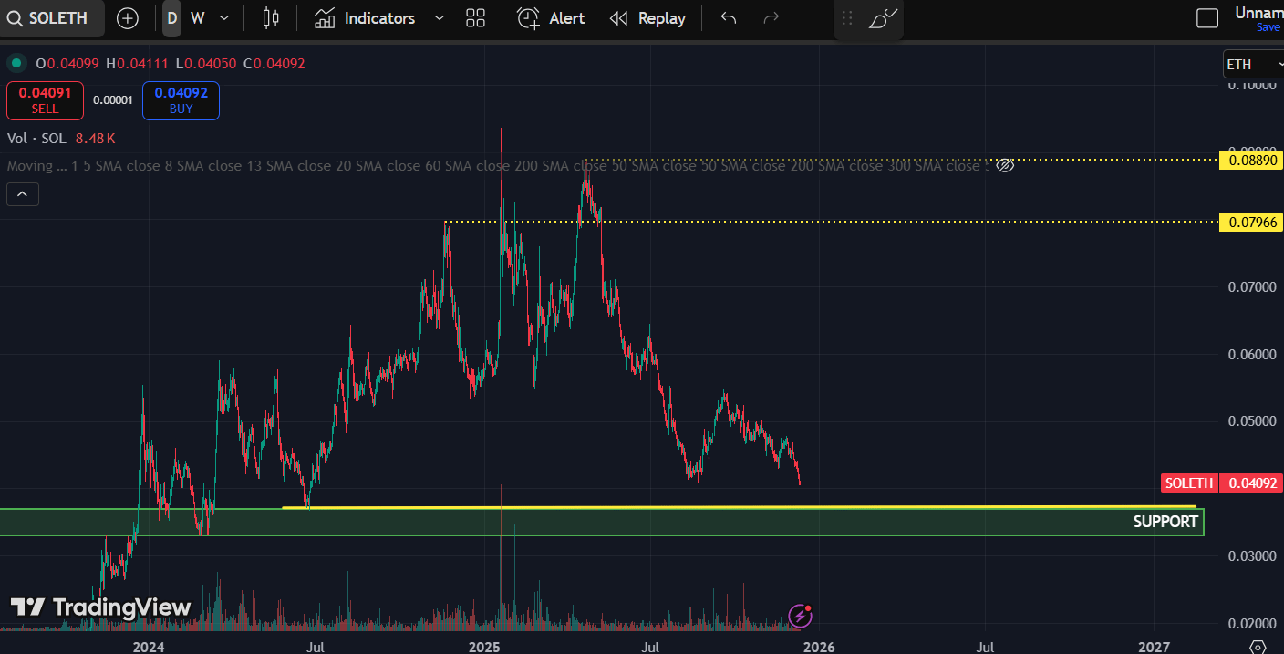 SOL/ETH is sitting on a multi-year support zone