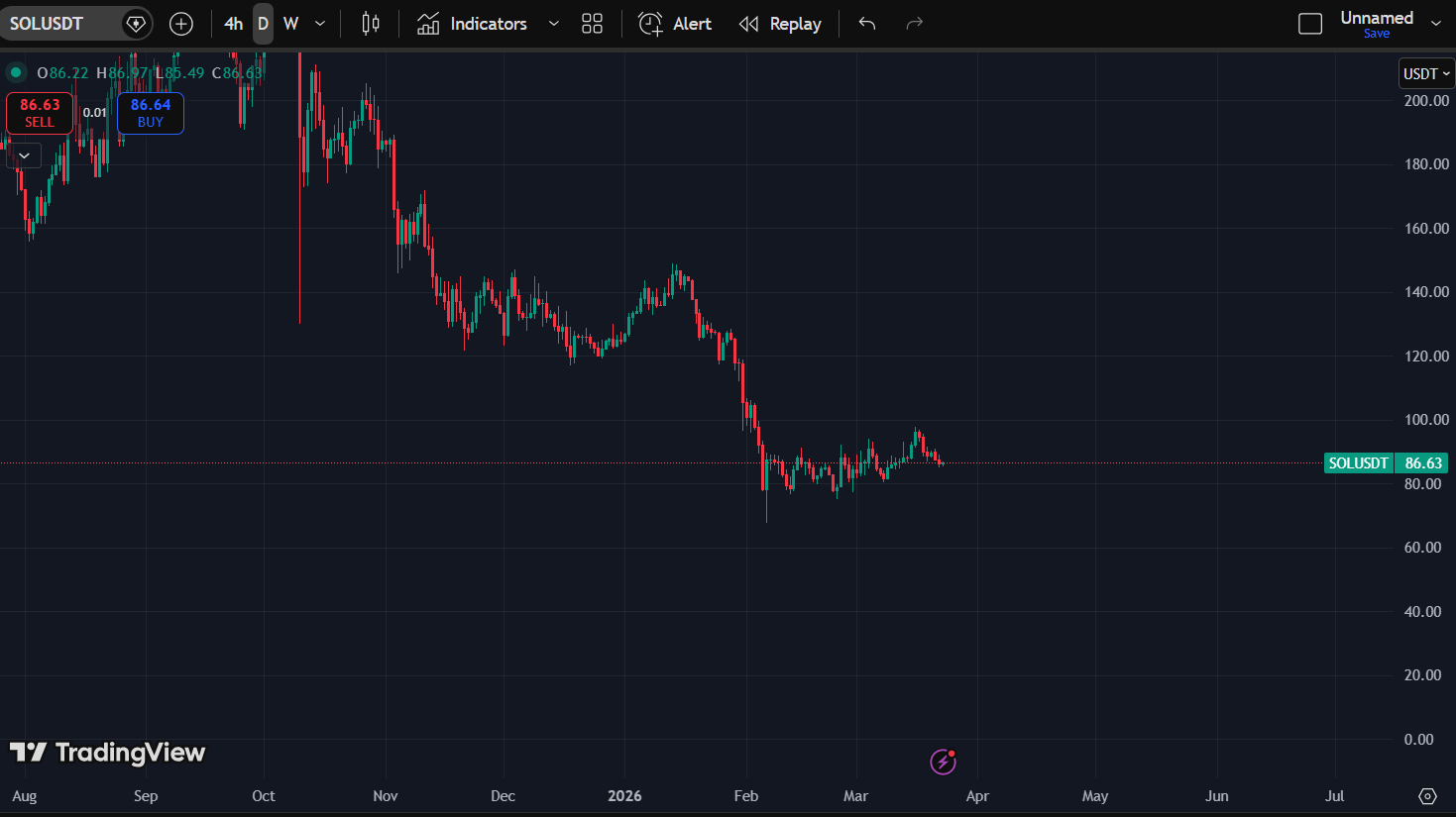 SOL chops between 78 and 95.