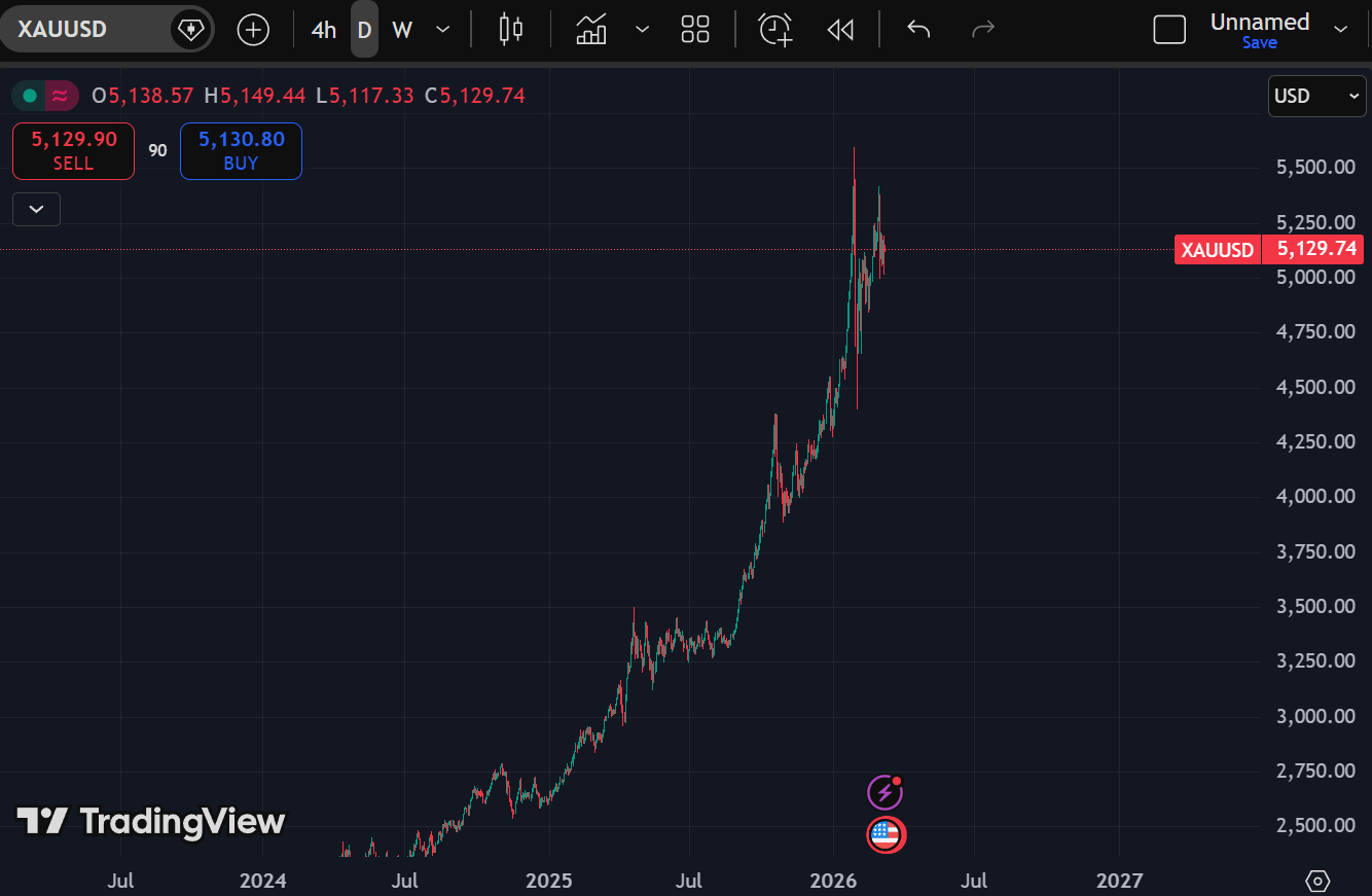 Gold is in a parabolic expansion above 5,100.