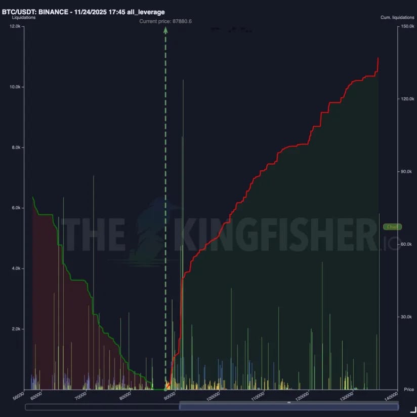 Massive stop orders sitting above 92k, and a liquidity wall forming just beneath 85k–73k.