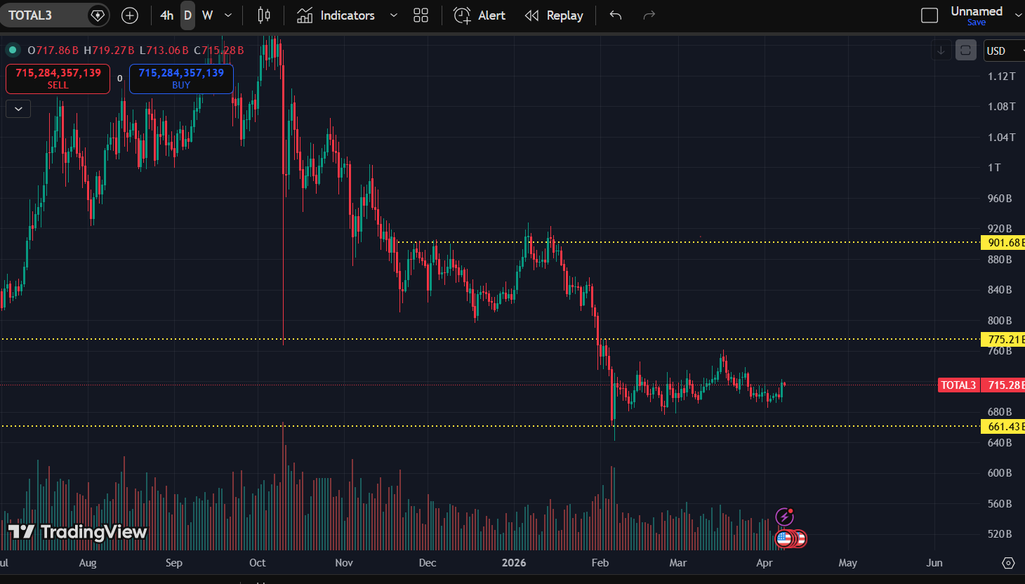TOTAL3 is sitting at ~714B.
