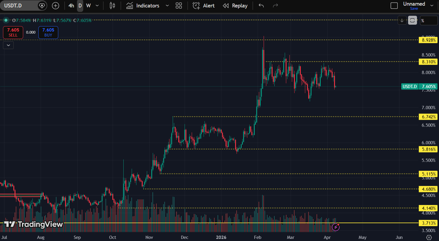 • USDT.D stays between 7.3 – 8.3