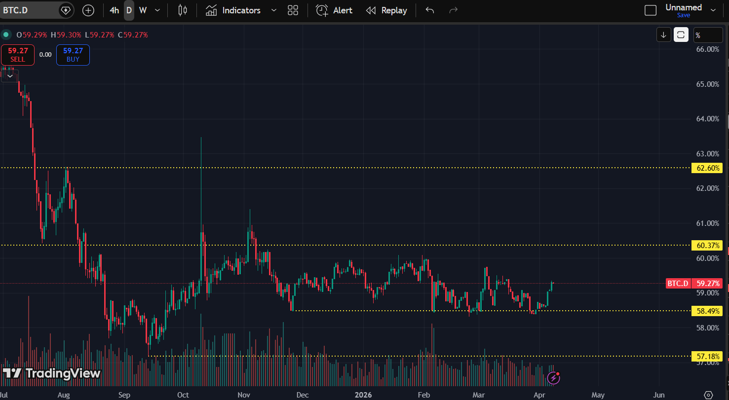• BTC.D stays between 58.4 – 60.3
